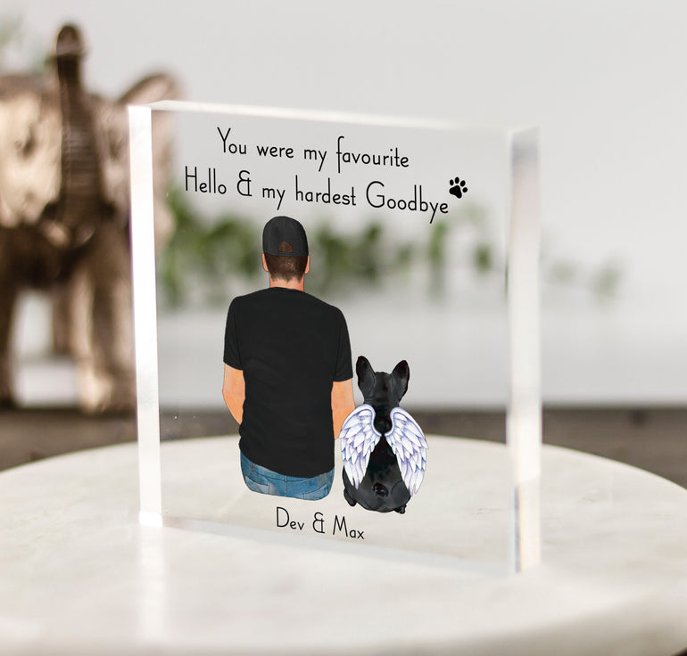 Male & Pet Remembrance Gift Illustration Acrylic Block - You were my favourite Hello & Hardest Goodbye