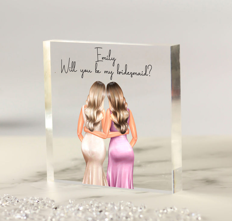 Personalised Bridesmaid Proposal Gift - Gift for Maid of Honor, Bridesmaid Proposal, Will you be my Bridesmaid, Acrylic Freestanding Block