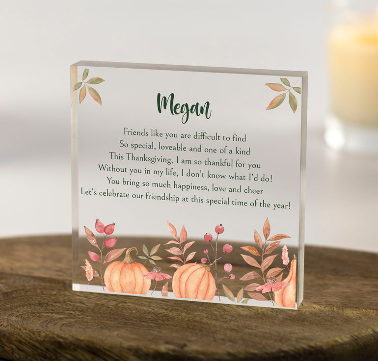 Thanksgiving Friendship Gift - Acrylic Poem Block