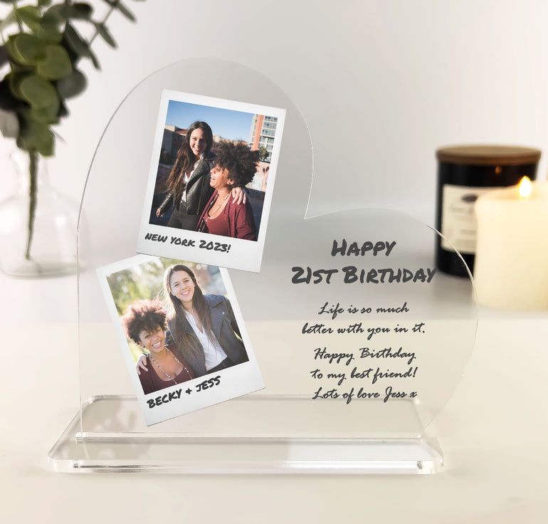 Personalised Birthday Polaroid Photo Gift - Acrylic Heart