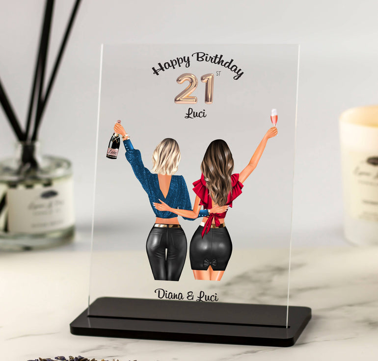 21st Birthday Gifts for Her - Personalised Acrylic Plaque and Stand