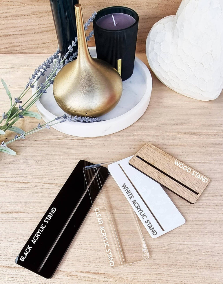 - Acrylic plaques come with a contemporary slimline wooden stand (acrylic stand upgrades available) to ensure the focus is on the plaque and to fit into any home/office décor.