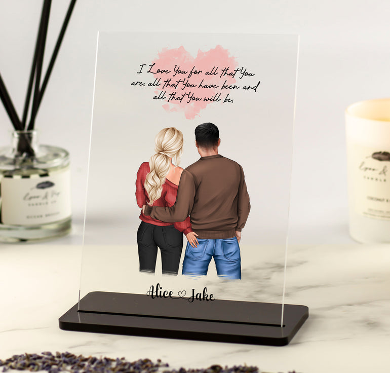 'I Love You...' Couple Customisable Illustration - Personalised Acrylic Plaque