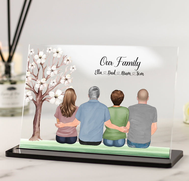 Personalised Gift for Dad, Family Portrait Illustration Acrylic Plaque with White tree - Our Family