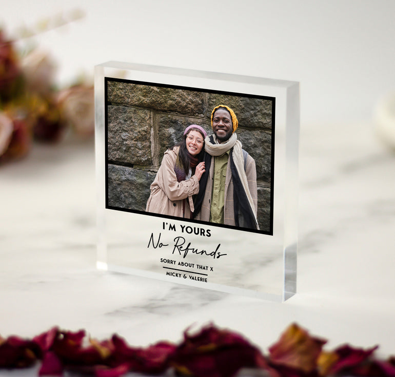 'I'm Yours No Refunds' Custom Couple - Acrylic Photo Block