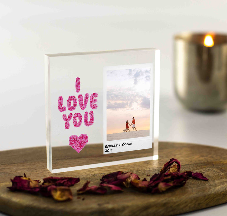 'I Love You' Polaroid Personalised - Acrylic Photo Block