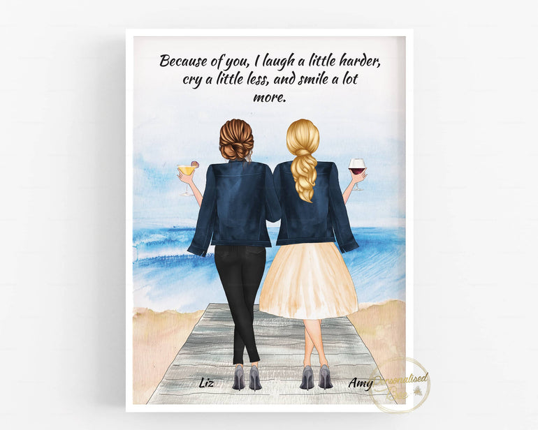 Friendship Print, Beach & Sea Background - Because Of You, I Laught A Little Harder - Personalised