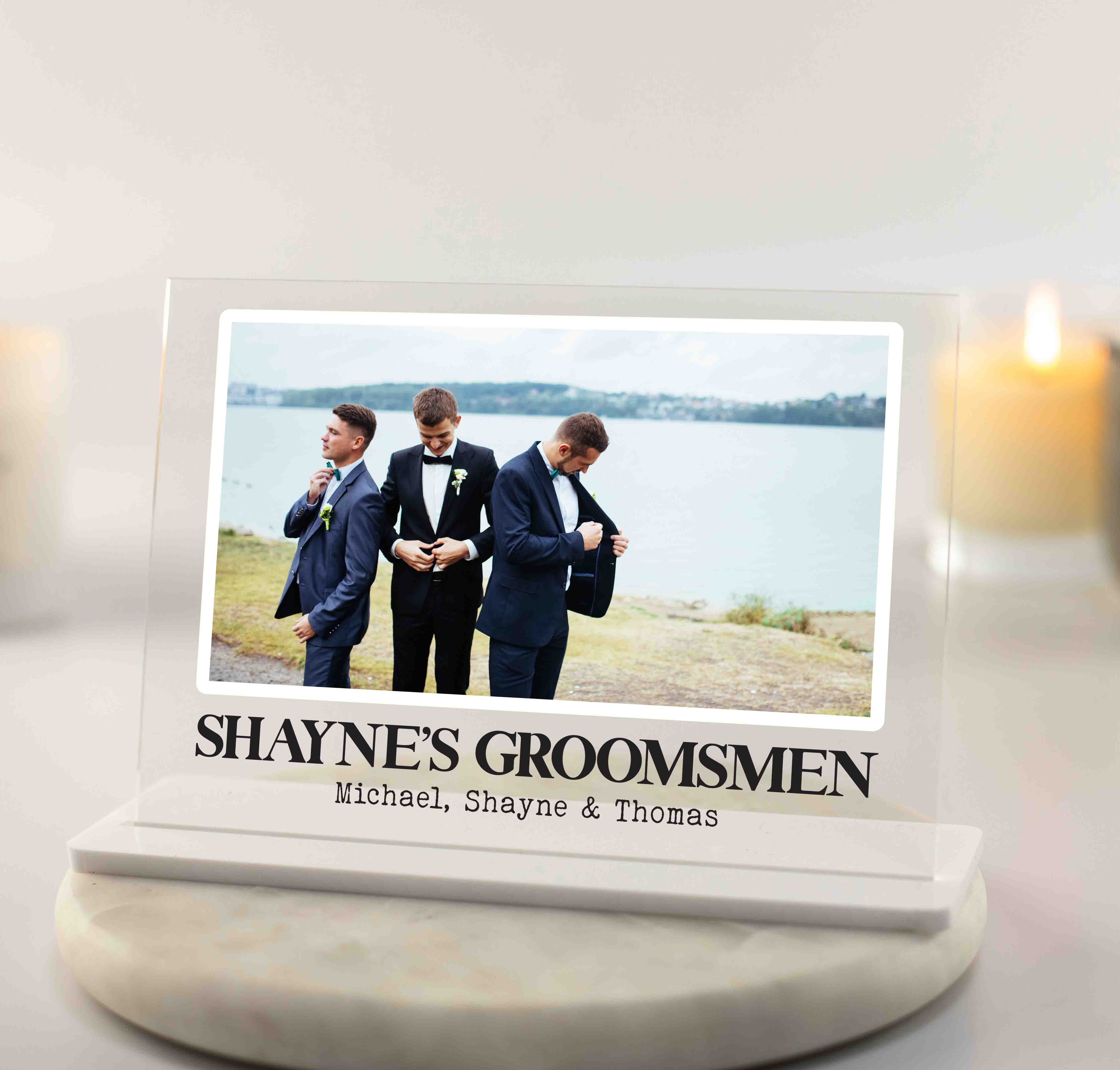 Show your gratitude to your groomsmen with our extensive selection of personalised groomsmen gifts. From custom keyrings to unique photo gifts, discover the ideal groomsman gift to celebrate your memorable day.