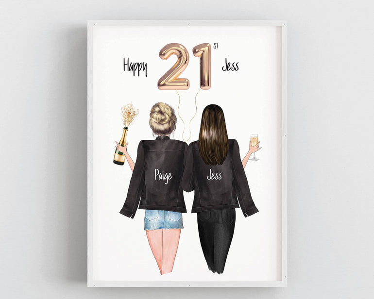 21st Birthday Gift For Her: Celebrations Personalised Best Friends/Sisters/Family Print