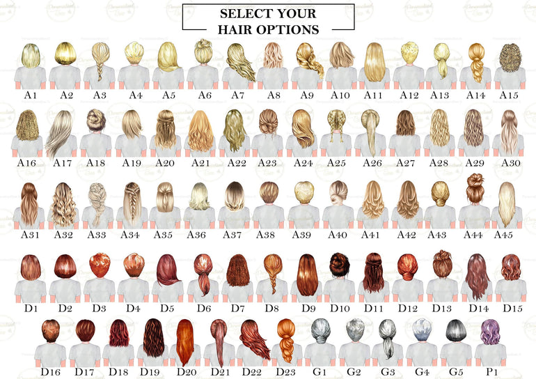 Create a unique portrait by selecting from a range of outfits, hair styles and colour, skintone and drinks/accessories. These options are found in the additional images in the listing, please swipe through from the main image.