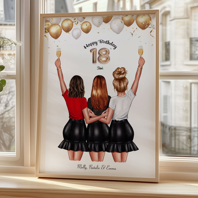 Personalised 18th Birthday Gift - 3 Best Friends Print