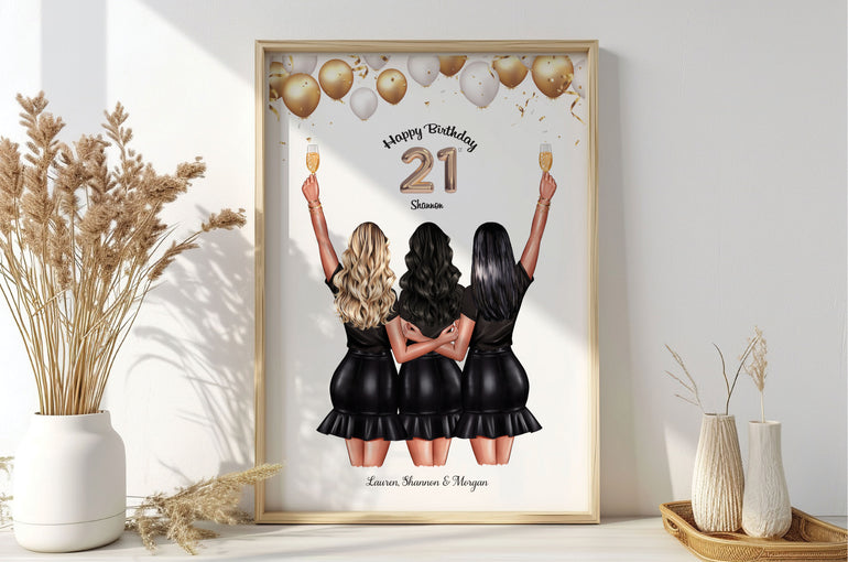21st Birthday Best Friends Gift - 3 Best Friends Personalised Print