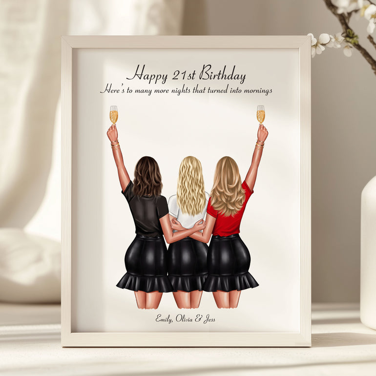 21st Birthday Gift For Friend - 3 Friend Personlised Print