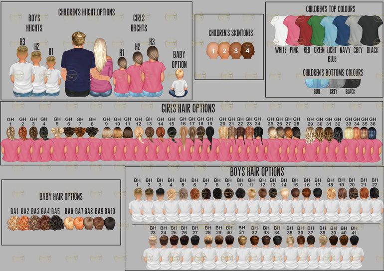 Printed Sizing Chart - Frame not included. Image is for illustration purposes only. Please note that colours may vary depending on your screen settings
