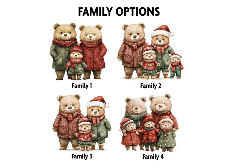 Capture the magic of your family’s first Christmas with this custom bear family bauble, a keepsake to treasure year after year. Featuring adorable woodland bear illustrations with a Christmas tree backdrop, you can personalise with names, year, and select the family size that best represents you.