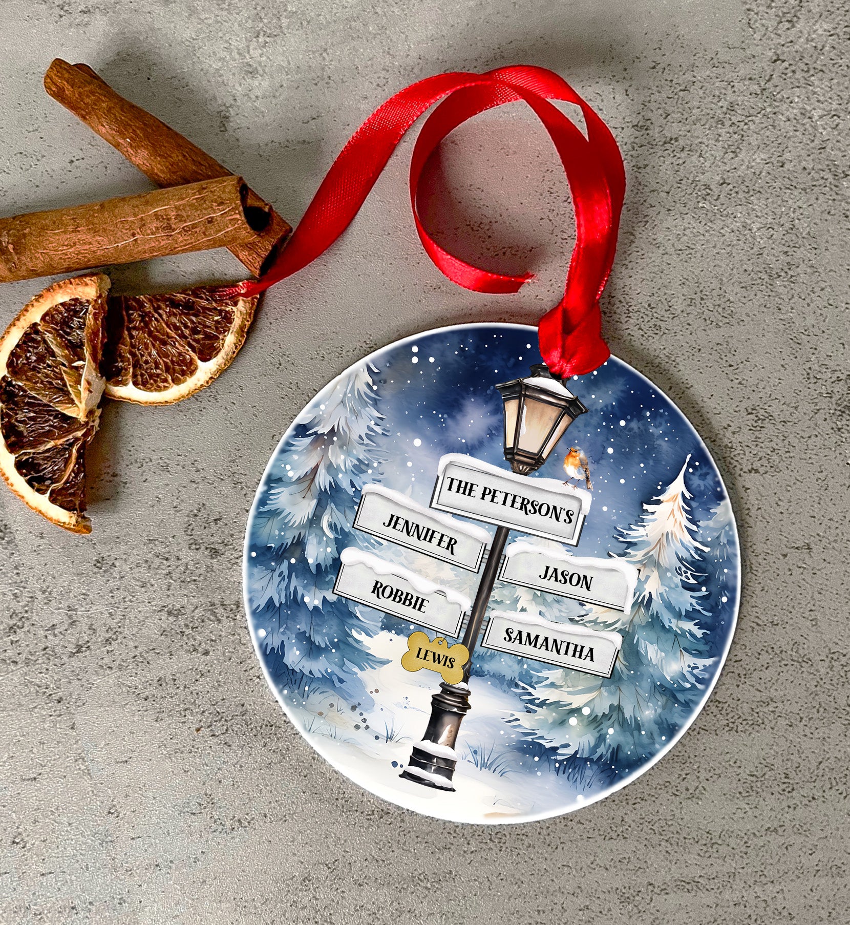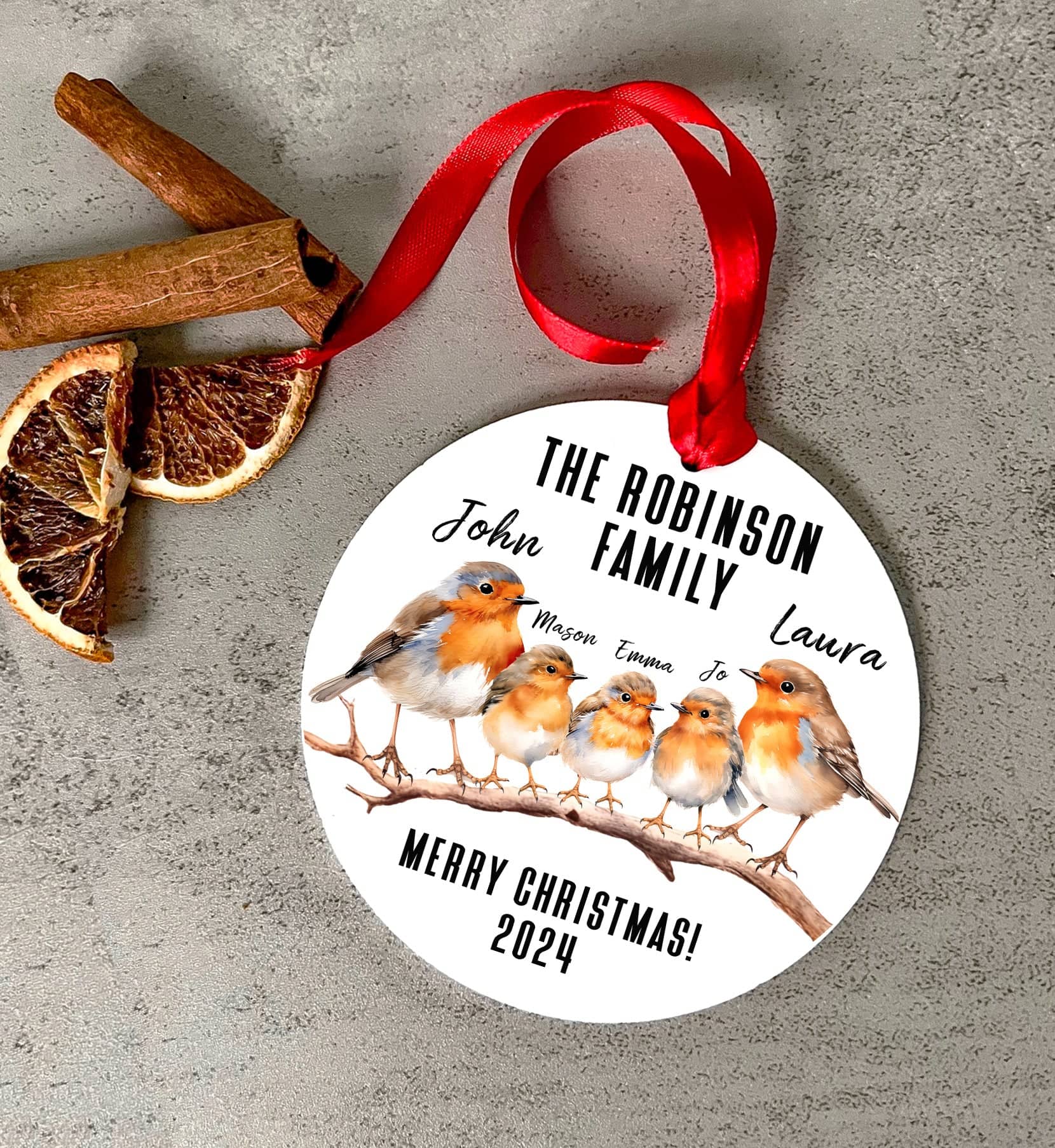 Choose your ribbon colour, number of family members, personalised message or favourite photos and any names to be added to finish off your Christmas tree baubles and spread some festive cheer.