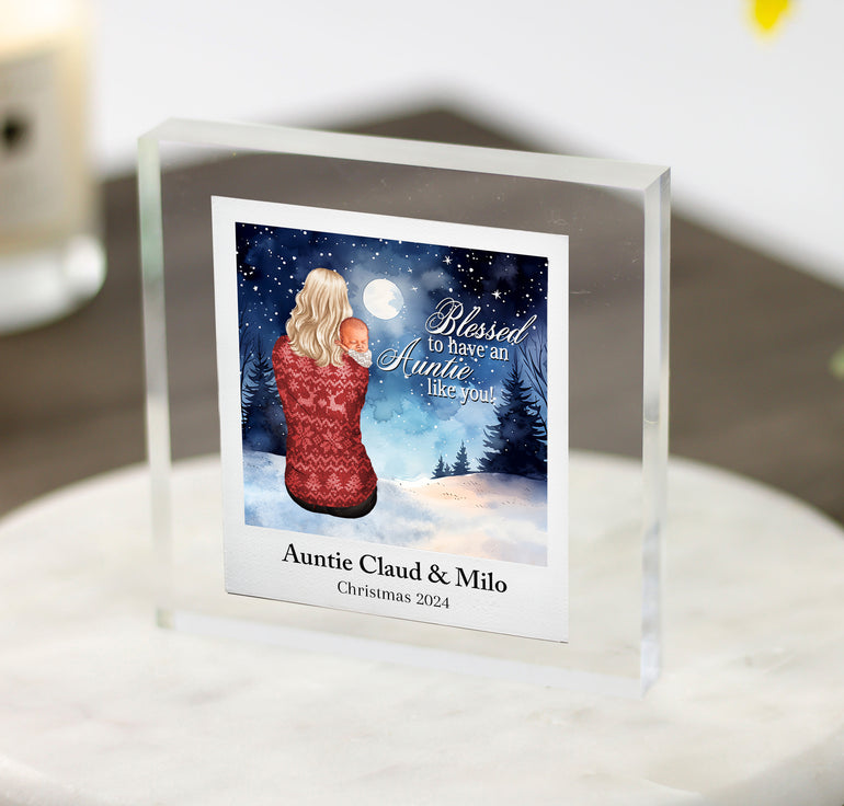 'Blessed to have an Auntie like you' Winter Background Polaroid Design - Acrylic Photo Block