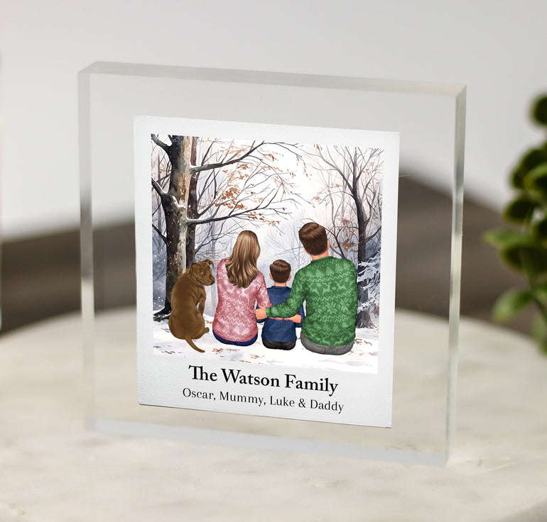 A unique Personalised Christmas Acrylic Block, Family member Illustration acrylic ornament for a Christmas together to add a special touch to your Christmas decor. Crafted with love and care.
