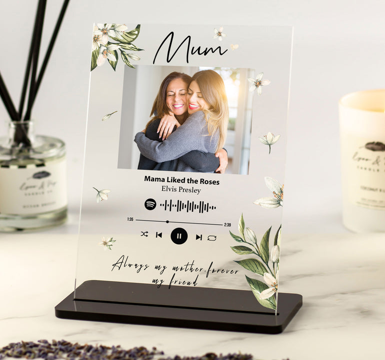 Mum - Scannable Spotify Code & Photo - Personalised Acrylic Plaque and Stand