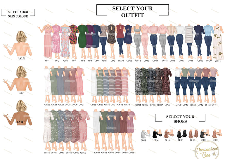 Customise Names, Outfits and Skintone to create a unique keepsake gift.