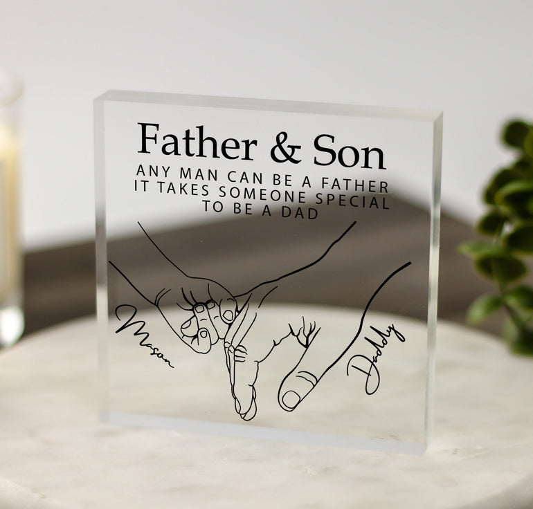 Father and Son/Daughter Baby Hands - Custom Name Acrylic Block