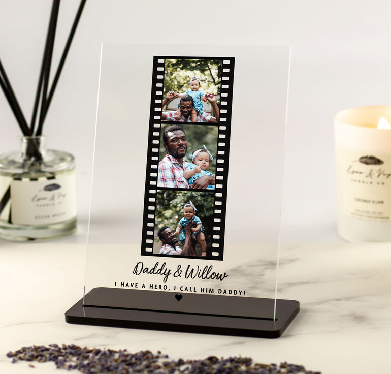 'I Have A Hero, I Call Him Daddy!' 3 Photo Strip Gift for Dad - Acrylic Photo Plaque