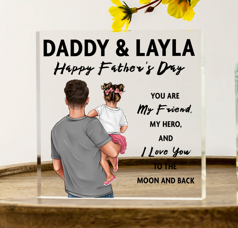 Personalised Gift for Dad, Father and Daughter Custom Portrait Acrylic Block - ideal for Fathers Day, Dad Birthday Gift, Stepdad Gift