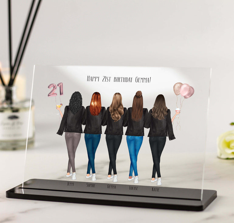 Personalised Birthday Gift for Her Acrylic Plaque - Customisable Group Best Friends Illustration ANY AGE 18th 21st 30th 40th 50th 60th