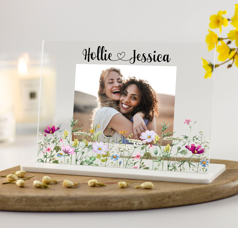 Photo with Flowers - Personalised Acrylic Plaque and Stand
