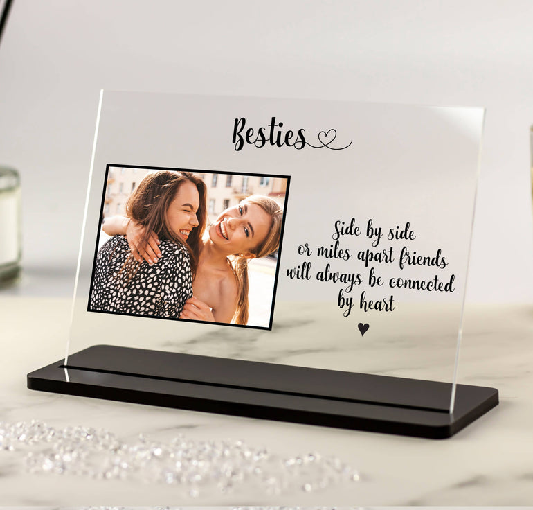 Besties Photo 'Side by Side' - Personalised Clear Acrylic Plaque and Stand