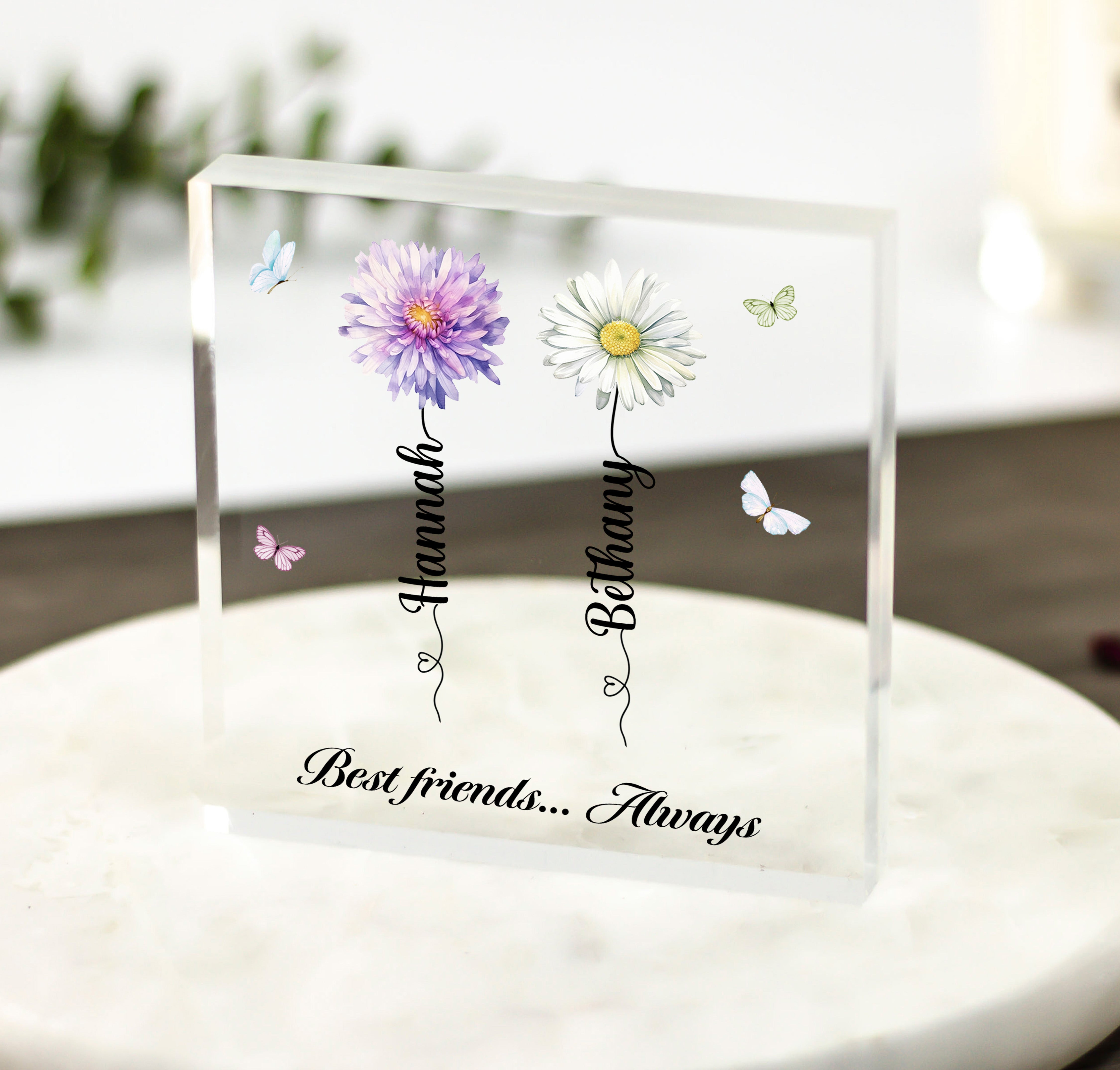 To personalise a friendship acrylic block gift, simply choose a favourite photo or design and provide any additional instructions for customisation. Our skilled design team will then create a unique and stylish finish that matches your preferences.
