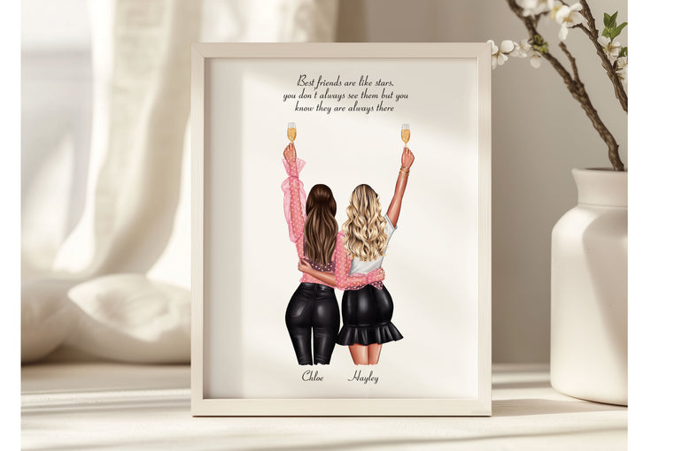 Personalised Best Friends Unframed Print - Customise Name, Hair and outfits and skin colour and Quote