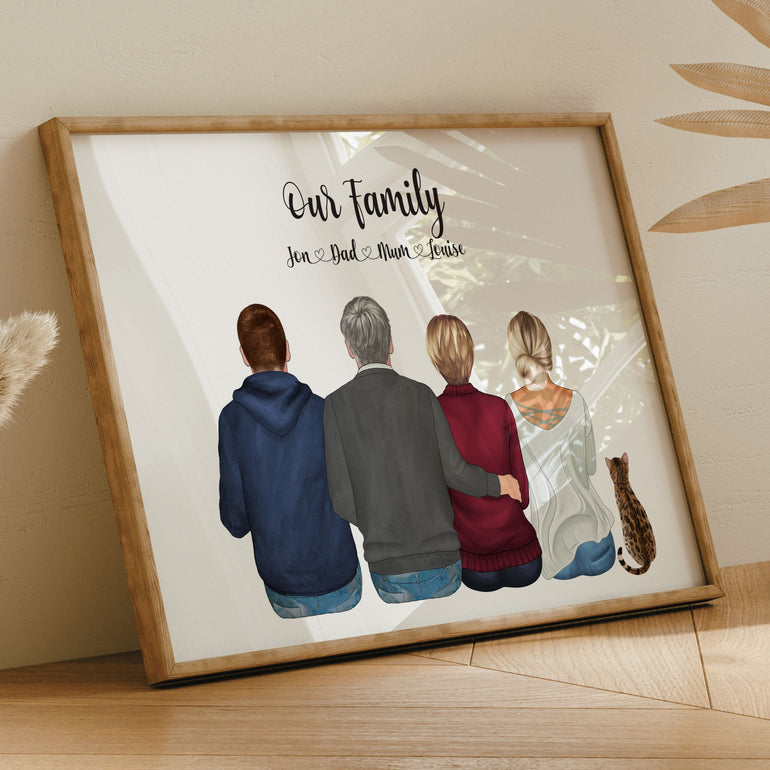 Our Customisable Family Portrait Print is a thoughtful unique gift or keepsake for friends and family. Customise hairstyles, skin colour, clothing, names, pets, wording.