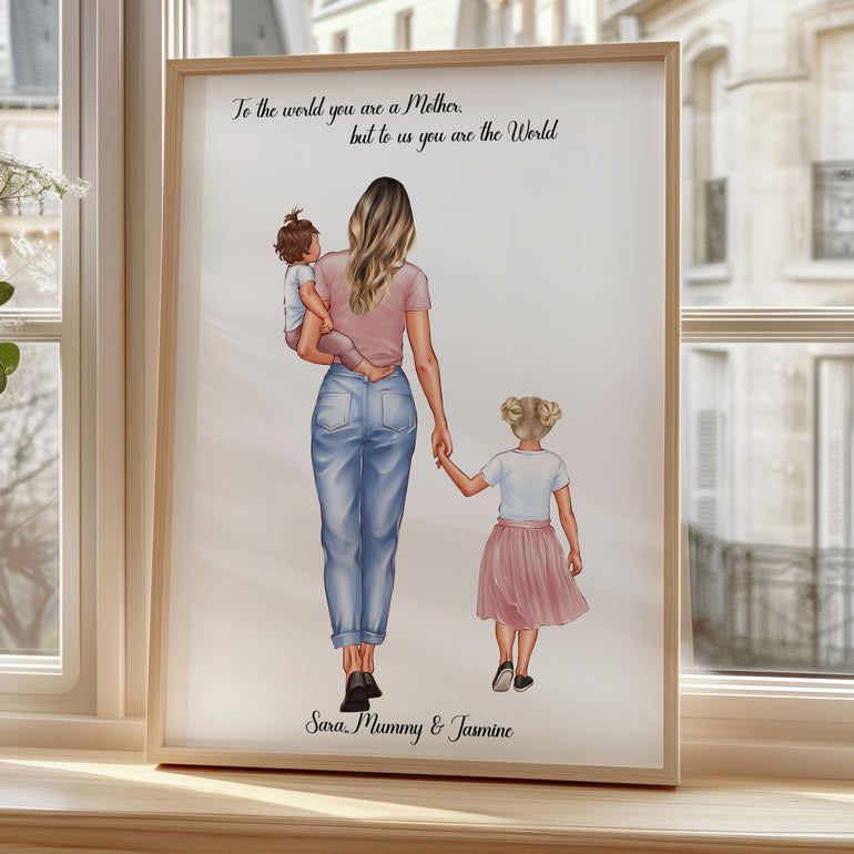 Our Customisable Mother, Baby and Daughter Print is a thoughtful unique gift or keepsake for mums, stepmum, Nan, Sister, Godmothers and Friends. Perfect for birthdays, Valentines, Christmas or love you gift. Customise hairstyles, skin colour, clothing with this simple quote or add your own quote. UNFRAMED PRINT.