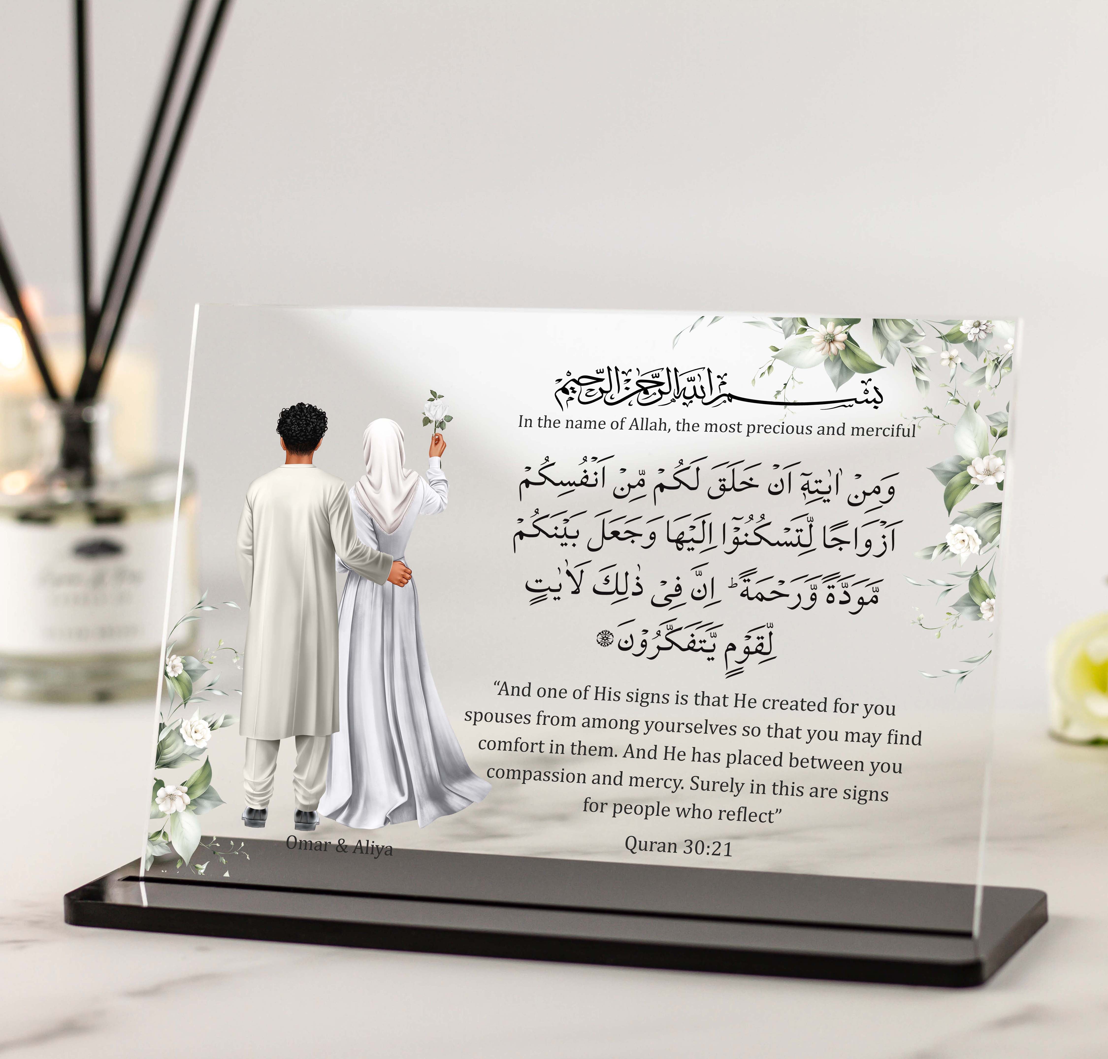 Explore our exquisite collection of personalised acrylic plaque handmade gifts for Islamic couples featuring stunning Islamic calligraphy designs. Choose from personalised Islamic gifts for Muslim couples, and faceless portraits for Muslim marriage and Nikkah gifts.