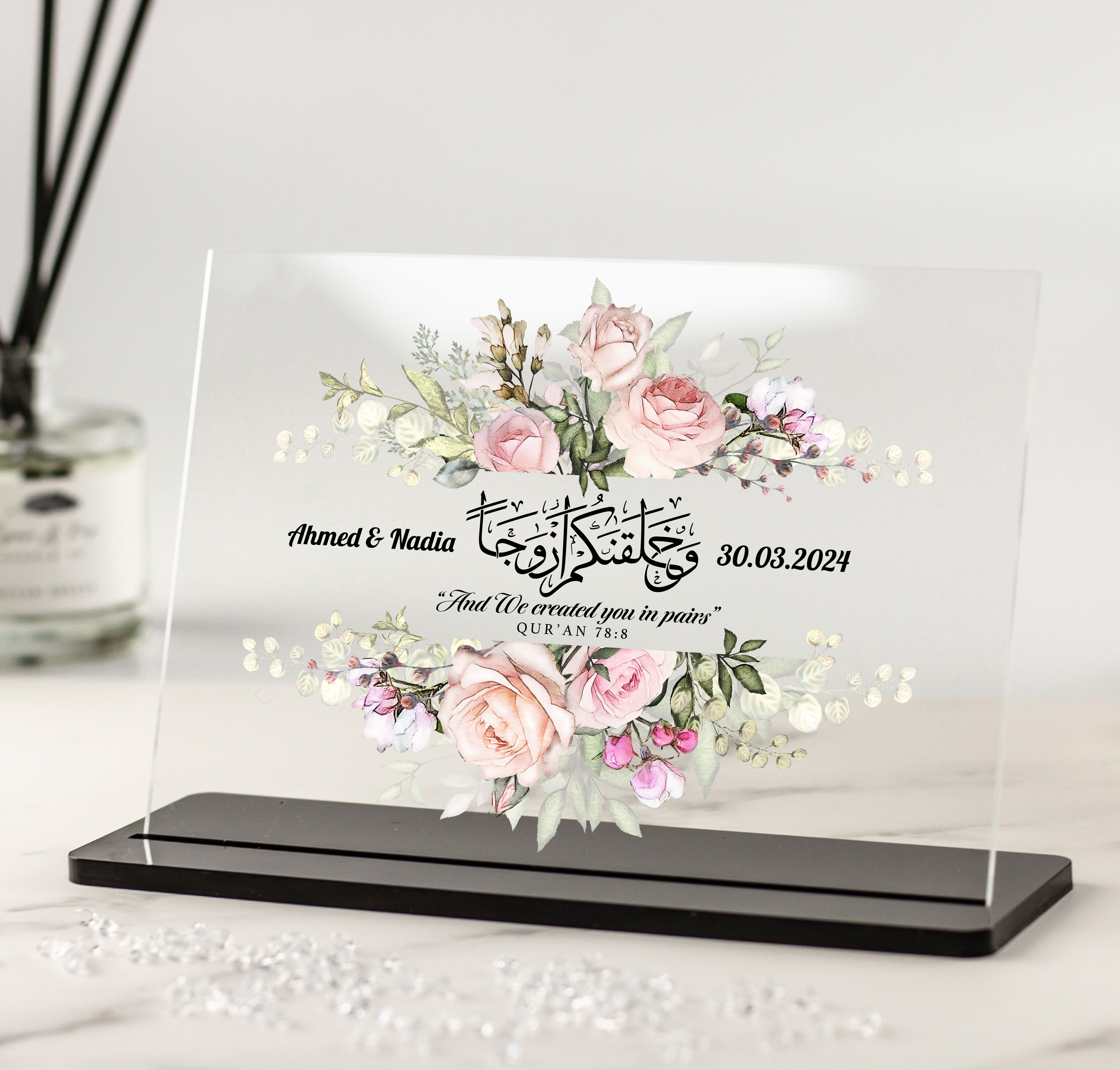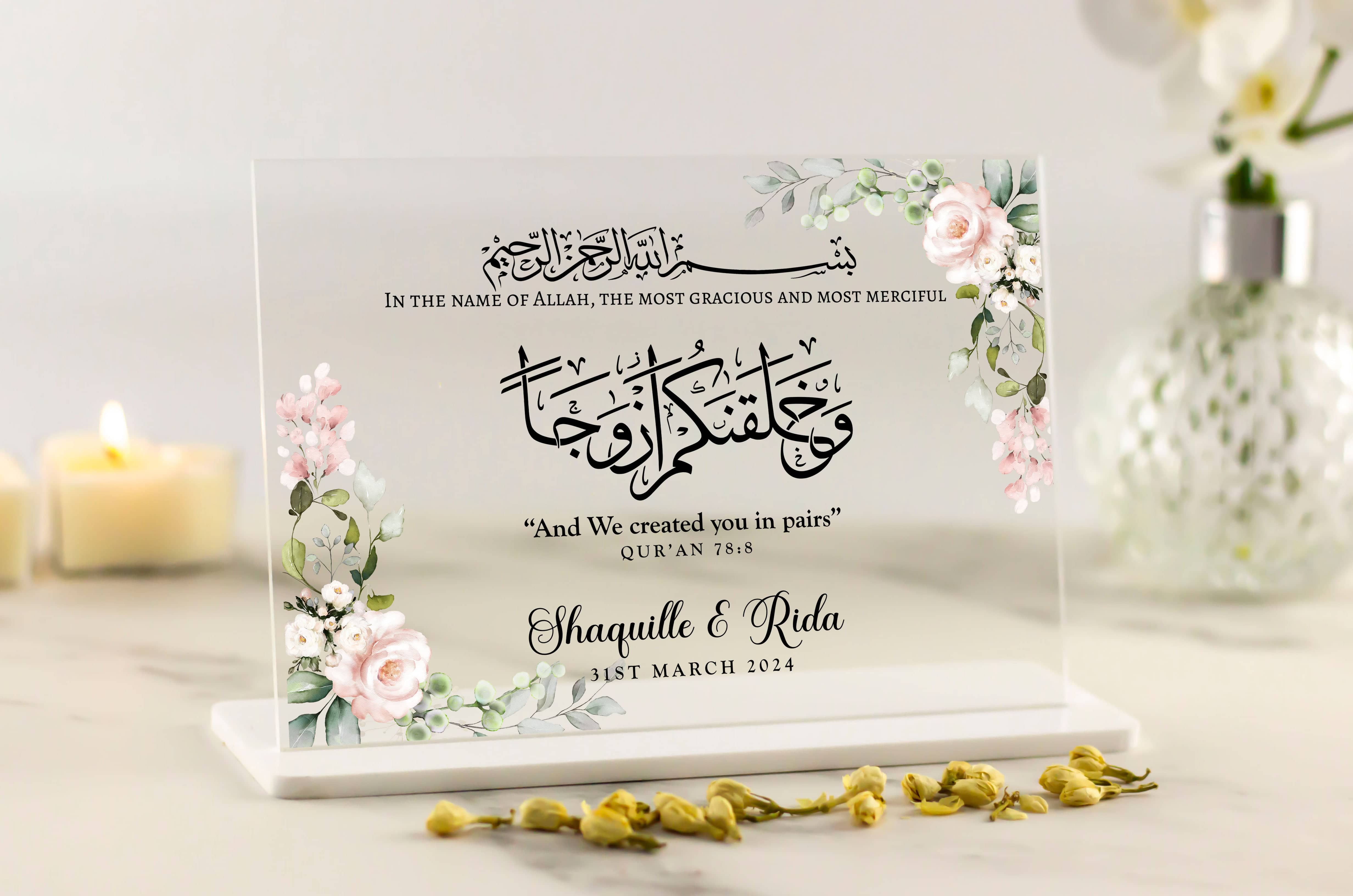 Whether you're searching for a unique and thoughtful gift or want to commemorate your special day, our personalised acrylic plaques are the perfect choice. Explore our range of Islamic wedding gifts today and find the ideal plaque that celebrates the beauty of Islamic marriage.