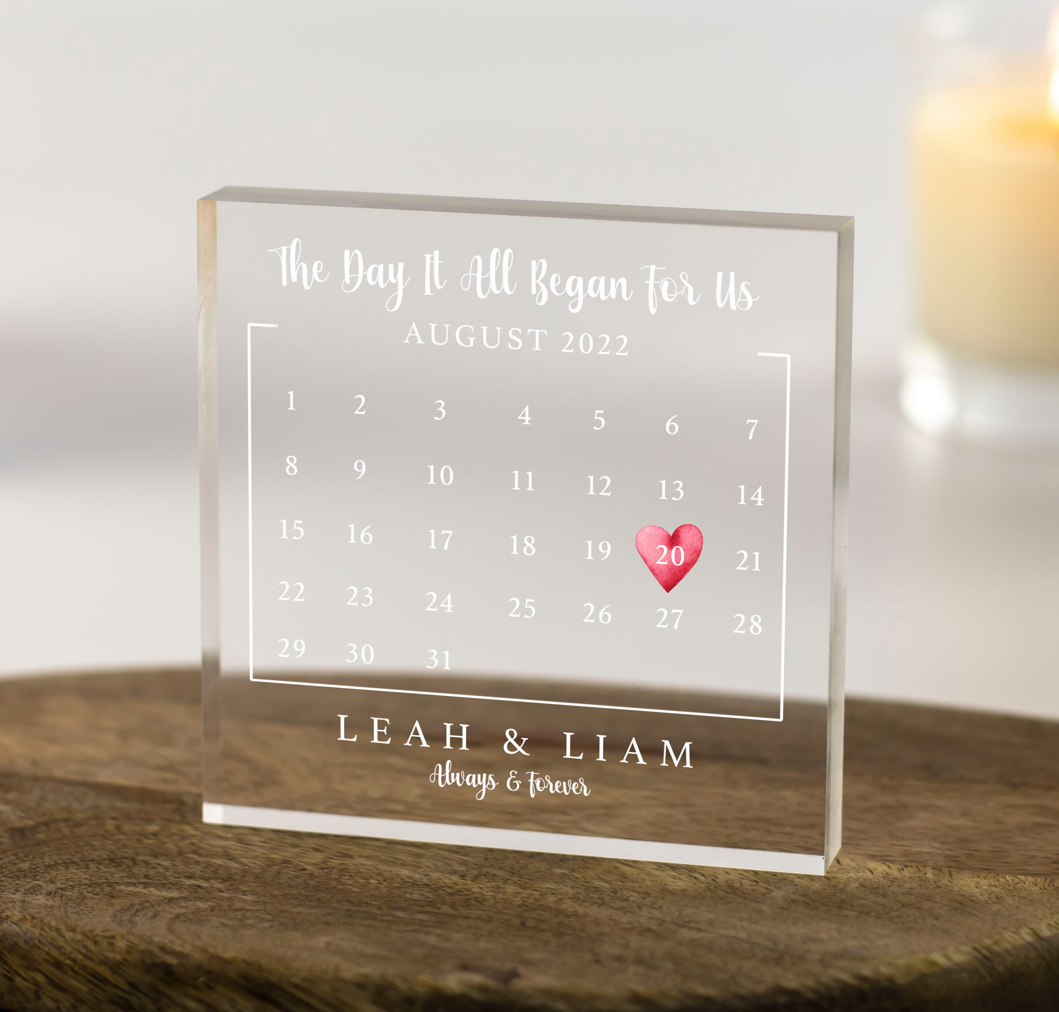 Anniversary Gifts - The Day It All Began Calendar Memorable Date Acrylic Block
