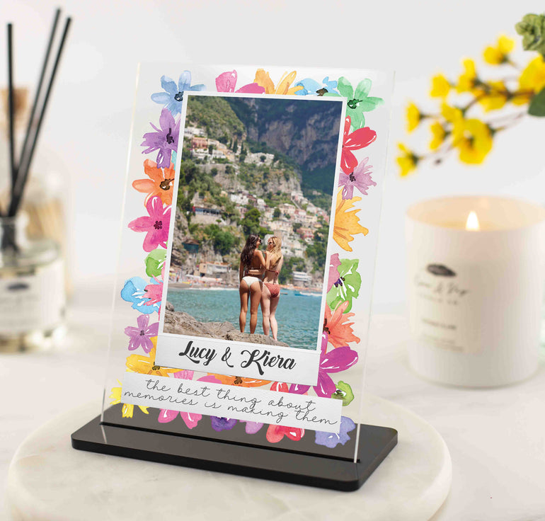 Floral Explosion Polaroid Personalised - Acrylic Photo Plaque