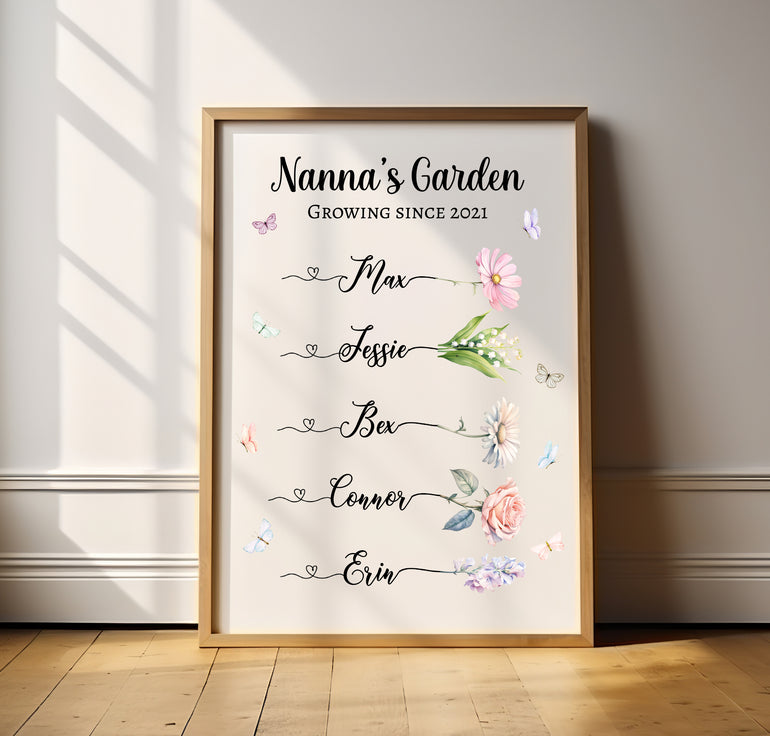 Gift for Grandma, Grandmother Gift from Grandchildren, Nan Birthday, Birth Flower Print, Mothers Day Gift Personalised Family Wall Art Print v3