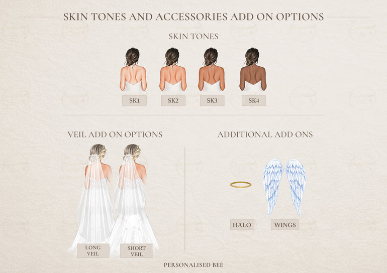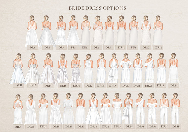 • Personalised bride and bridesmaid illustration, created to resemble your chosen people