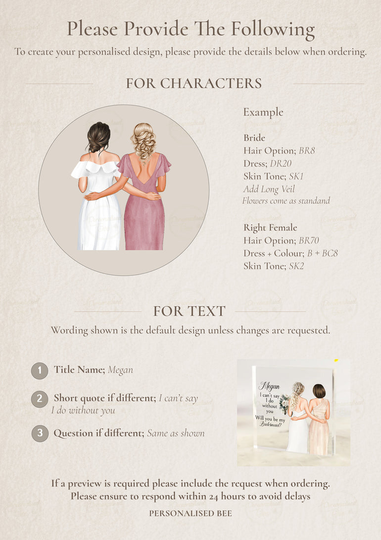 Personalised Bridesmaid Proposal Gifts - Personalised Bride and Bridesmaid/Maid of Honour/Mother of Bride Acrylic Block V2