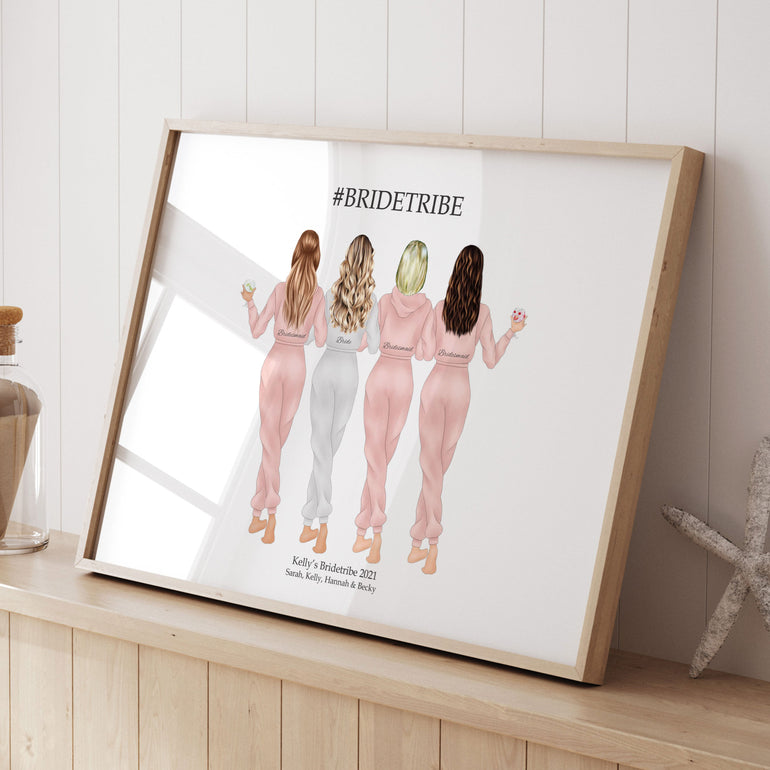 Our exclusive inhouse designed customisable Bride Tribe illustration makes the perfect keepsake gift for the Bride or as gifts to your Bridesmaids as a keepsake gift.
