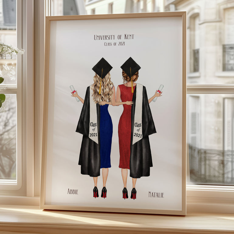 Graduation Gift for Her, 2 Friends, Personalised Print, Class of 2023-24 Graduation Gift for daughter
