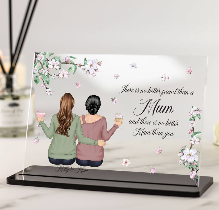 Customisable Mother and Daughter illustration Acrylic Plaque with slimline stand -Ideal unique thoughtful gift for Mother's Day, Unique Birthday Gift for Mum, Christmas or just because, this sentimental one of a kind gift will be cherished forever.