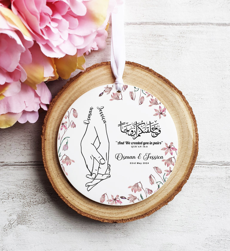 The Personalised Couple Holding Hands Drawing with Dua Hanging Ornament is a perfect gift for any couple looking to celebrate their love and devotion. Whether it's for a wedding anniversary, a milestone birthday, or just because, this ornament is a thoughtful and meaningful way to express your love and faith.