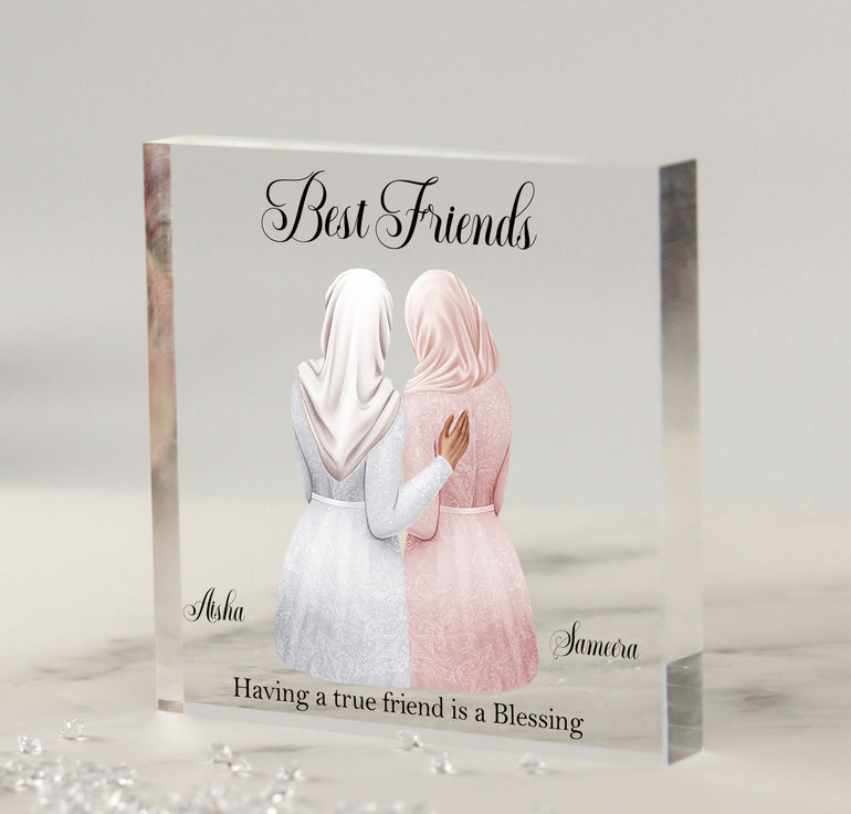 Our Personalised Muslim Best Friend Print Freestanding Acrylic Block makes a thoughtful unique gift or keepsake for any Friends or loved one.