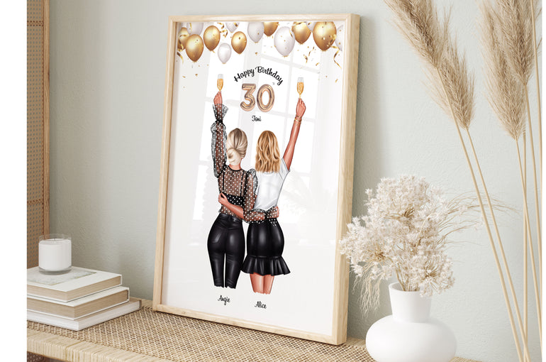 30th Birthday Gift For Her - 2 Best Friends Personalised Print