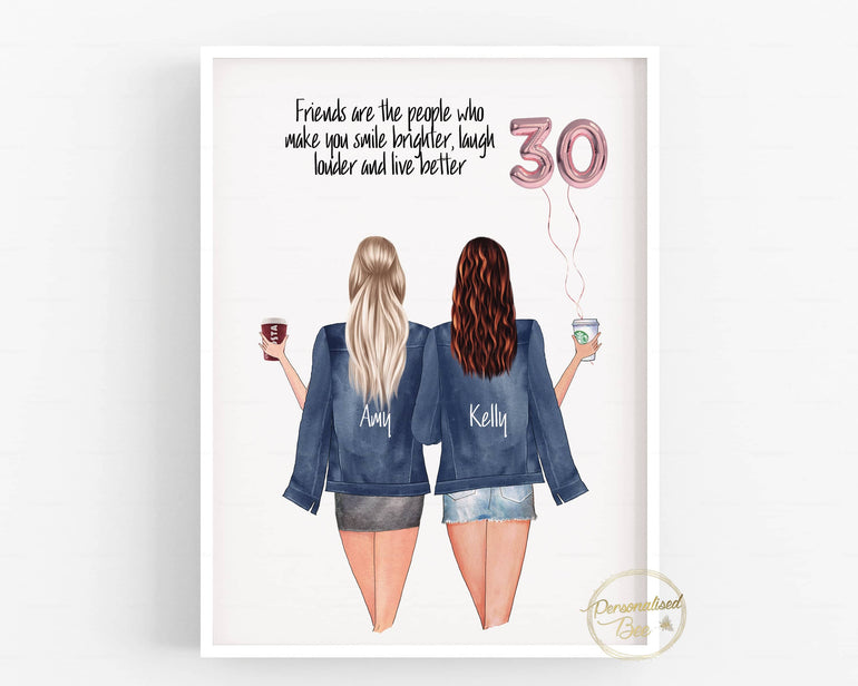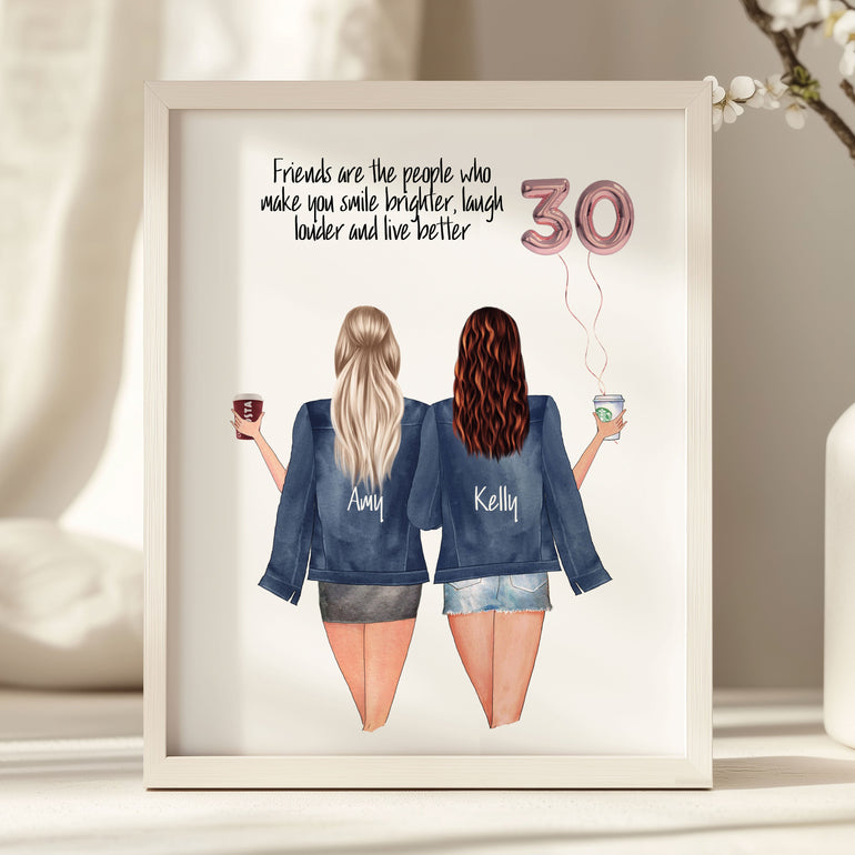 30th Birthday Gift For Her - 2 Friends Portrait Print - Friends are the people who make you smile