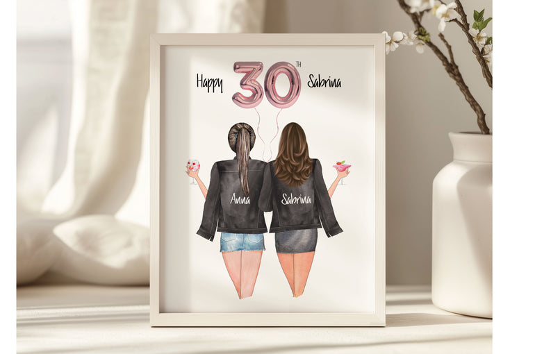 30th Birthday Present, Personalised Gift for a Friend, Bestie Gift, Customisable, 2 Friends Prints, 60+ Hairstyles, Birthday Friends
