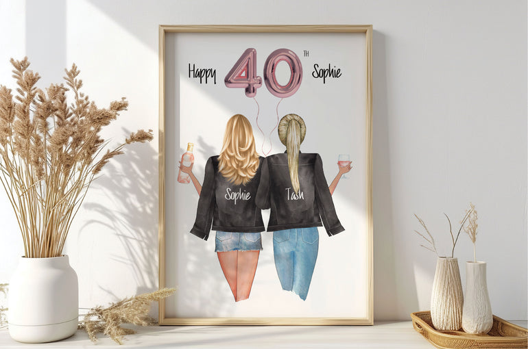40th Birthday Present, Personalised Gift for a Friend, Bestie Gift, Customisable, 2 Friends Prints, 60+ Hairstyles, Birthday Friends